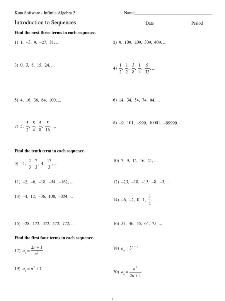 15 Kuta Software Infinite Algebra 2 Arithmetic Series Solving Linear Equations Word Problem Worksheets Graphing Linear Equations